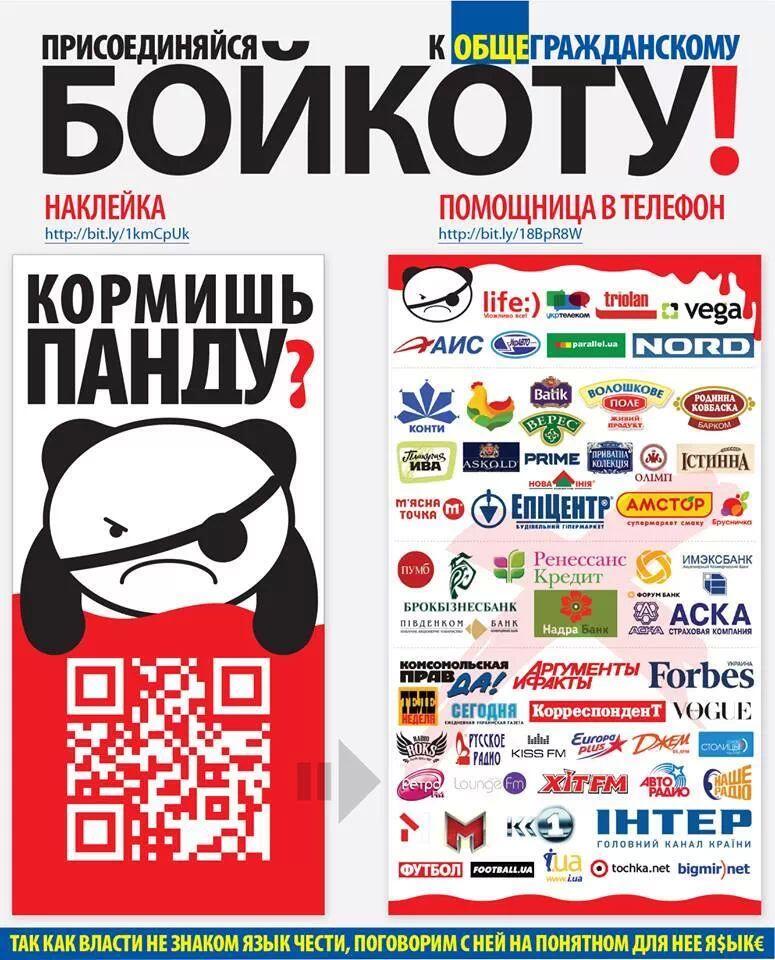 Нагадаємо, економічний бойкот є одним із найбільш ефективних методів тиску: регіонали не розуміють жодних слів, окрім мови грошей. Лише в Фейсбуці ініціативу вже підтримали майже 28 тисяч людей (23.12.13), повідомляють texty.org.ua.